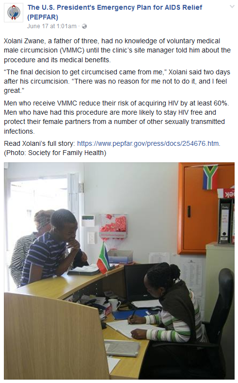 It sounds like the people in charge of PEPFAR PR have run out of ways to bang the circumcision pot.