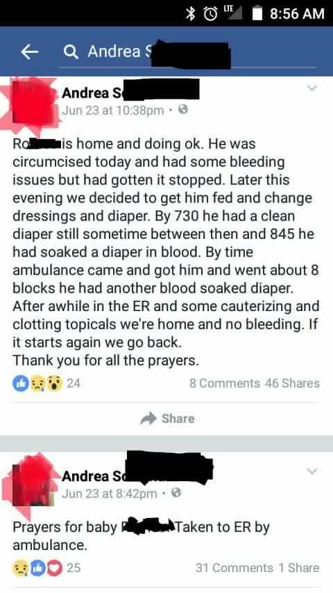 FACEBOOK: Another Circumcision Mishap - Baby Hemorrhaging After Circumcision